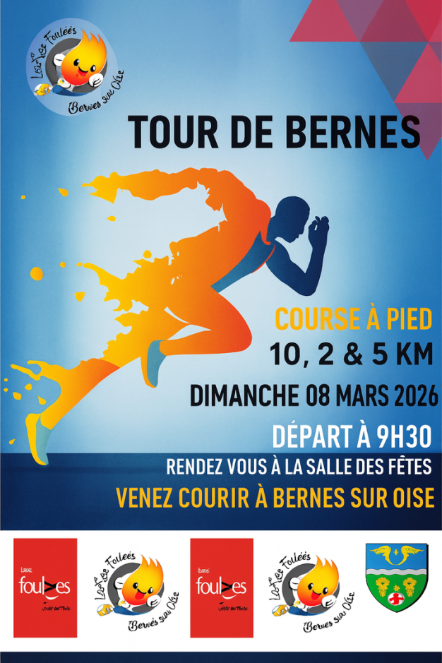 dossards a retirer sur place a la salles des fêtes de Bernes sur Oise de 07h30 à 09h15